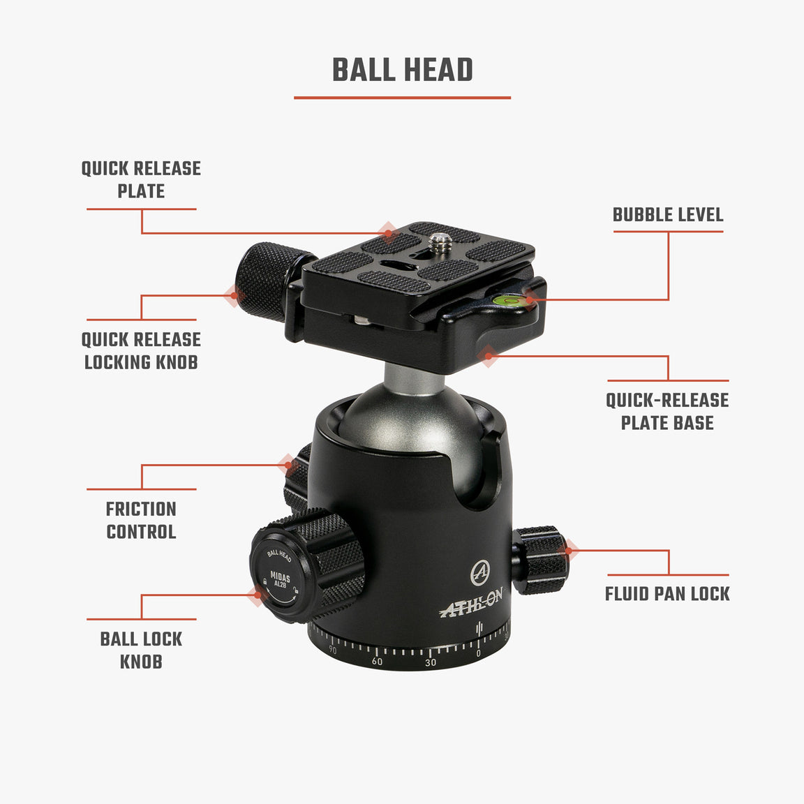 Athlon Midas AL28 Aluminium Stativ Med Kulledshuvud